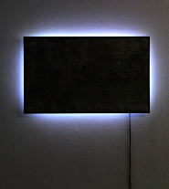1: LIGHTHEART, light installation, dimension variable; 2: MARCELA'S GARDEN, oil on paper, cut and glued, mounted on dibond, 88 x 111 cm; 3: SCREENSHOT, oil on paper, cut and glued , mounted on dibond, led light, aluminum, 56 x 92 cm