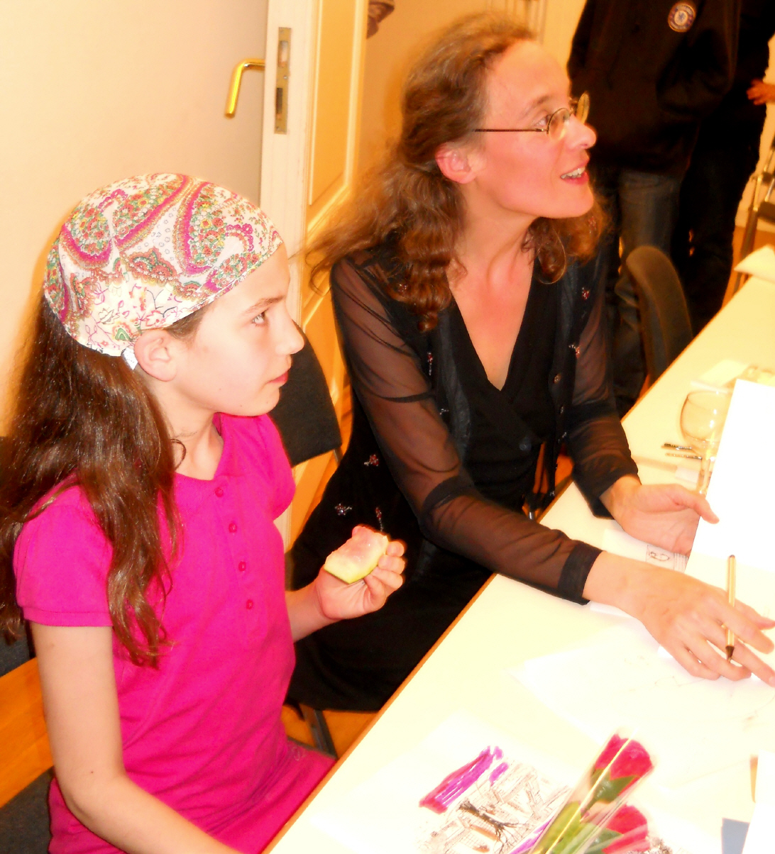 L. i. B.: Anna Faroqhi mit Tochter Emily nach der Comic-Präsentation, Foto: Elisabeth Heller