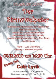 Heinrich Hoffmanns - vertont von Luca Carbonaro. Keineswegs im altem Stil, sondern emotionsgeladen zwischen Jazz, Pop, Blues und Chanson