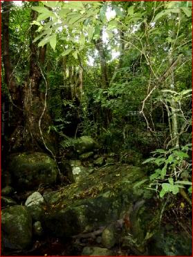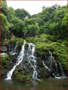 Auf dem Weg nach oben passieren die Besucher eine Vielzahl von tropischen Bäumen und Gewächsen. Dazu gehören wuchtige Bananenbäume ohne Früchte, der Bambole-Baum mit besonderer Rinde, eine See-Kartoffel, überall schlanke Stämme von über 20 Meter hohen Gummibäumen und nicht zu vergessen alle paar Meter ein riesiger Ficus, der auch bei vielen in Deutschland im Wohnzimmer steht. Ich fotografiere Farne, die bereits seit 150 Millionen Jahren auf der Erde wachsen und eine Zuckerpalme mit Kinderfaust großen schwarzen Früchten, aus denen Zucker gewonnen wird, der sehr gesund sein soll. Um zu den Wasserfällen zu gelangen, muss ich viele Treppenstufen steigen und schwitzen. Mein Hemd ist so nass als ob ich es gerade aus der vollen Badewanne gezogen habe.