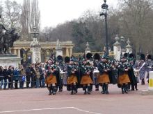 Am diesem späten Sonntagvormittag im März versammeln sich tausende Londonbesucher vor den Buckinghampalast, um einige Blicke auf die berühmte Wachablösung zu erhaschen.