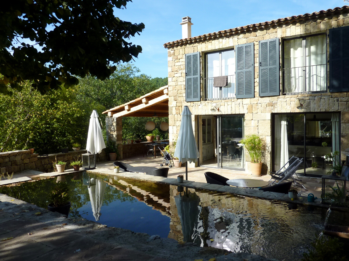 Sein Bauernhaus (links im Bild) bietet zwei geräumige Gästezimmer, einen Swimmingpool bestückt mit Liegen und eine Sauna. Außerdem gibt es noch im Weiler fünf Ferienwohnungen. Authentisch ist natürlich auch die Küche, die beim französischen Frühstück mit vier von Pascal selbst hergestellten Marmeladensorten beginnt: Weiße Feigen mit Rum und Vanille, Pfirsich mit ein bisschen Minze (wegen der Frische!), Pflaumenmarmelade mit ganzen Früchten und nicht zuletzt die berühmte Marmelade aus Esskastanien.