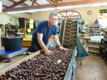 Frèdèric Lavesque (links im Bild) besitzt in dem kleinen Ort Largentiere einen Supermarkt, handelt mit der Edelkastanie und hat natürlich einige ihrer Sorten im Angebot. Immerhin liefert er in andere Teile Frankreichs pro Jahr 150 Tonnen der Kastanien.