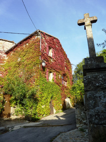 Zurück zum Bauernhaus führt der Weg durch den authentisch gebliebenen mittelalterlichen Weiler vorbei an provenzalischen Landhäusern mit charmanten Terrassen und Häuserfassaden, die von bunt gefärbten Weinreben bewachsen sind.