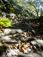 Allerorten seien auf dem Weg Genie und Ausdauer erkennbar, mit denen dreißig Generationen in 1000 Jahren gewirkt haben. Nahe den Häusern stehen die Bäume der Esskastanien. Dutzende Kastanien in ihrem Schalenmantel, aus dem meist schon die Früchte herauslugen, bedecken den Boden.