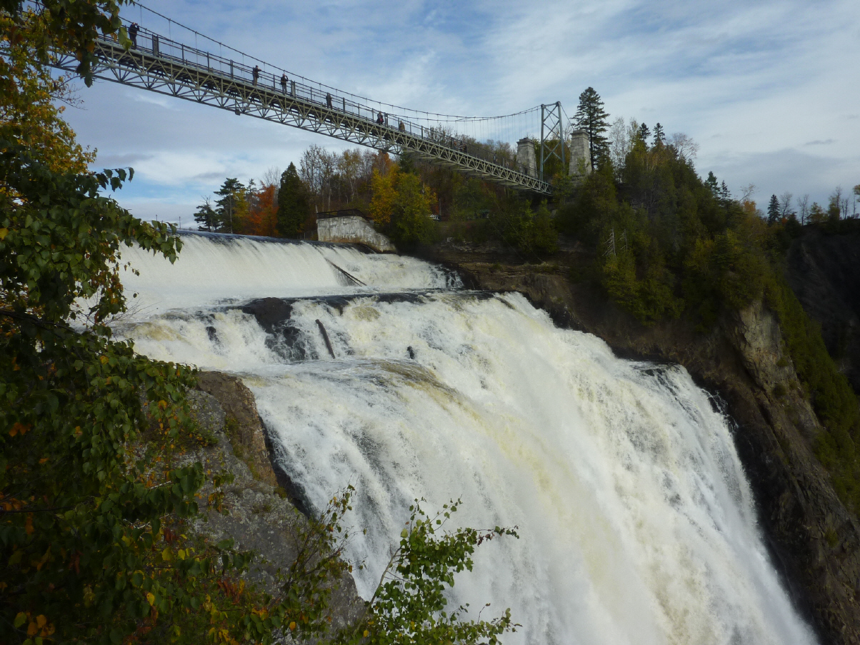 Nördlich von Quèbec, etwa 15 Autominuten entfernt, befindet sich der Parc de la Chute Montmorency. Hier stürzt der gleichnamige Fluss in beeindruckenden Wasserfällen in die Tiefe. Mit ihrer Höhe von 83 Metern ab der Flusskante übertreffen sie die berühmten Niagarafälle an der Grenze zu den USA um ein Drittel.