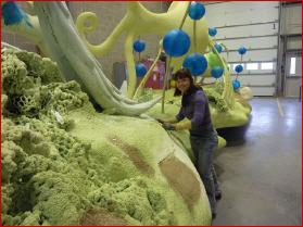 „Der Karneval wird in Quèbec wieder vom 1. bis zum 17. Februar im Jahr 2013 gefeiert“ erzählt mir der extra angeheuerte PR-Manager Patrick Lemaire. Er führt mich stolz durch die in diesem Jahr neu eröffneten Werkstatthallen, in denen junge Künstler wie Julie Seward an Figuren auf neuen Umzugswagen basteln.