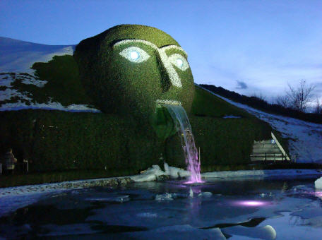 2. Am Eingang der Kristallwelten wacht ein Wasser speiender Riese mit funkelnden Augen
