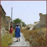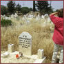Wir nähern uns dem Dorfrand von Louroudjina und halten am Dorffriedhof an, wo Günay ihren üblichen Gruß entrichten will. Am Grab der Mutter verweilt sie, ein Moment des Schweigens, eine Blume bleibt zurück.