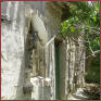In dieser Talsenke zwischen den Hügeln sind die Häuser alle einstöckig und bedeckt mit alten Dachziegen, Mönch und Nonne. Erbaut sind sie aus dem örtlichen unbehauenen Stein, die Zwischenräume und Ritzen sind gefüllt mit Kiesel, was zauberhafte Muster ergibt. Trotz des herunter gekommenen Zustands der Bauten kann ich noch die ursprüngliche Schönheit in den Fesnter- und Türstöcken entdecken, sowie an den schönen Türen selbst, die alle noch existieren.