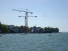 In der Sommersaison gehört die Kulisse der Seebühne zur Bummelpromenade der Stadt Bregenz dazu. In diesem Jahr ist sie geprägt durch Verdi`s Aida-Aufführung. Zwei 68 und 51 Meter hohen Kräne und zwei überdimensionale Füße der Freiheitsstatue, versehen mit dem Blau und den gelben Sternen der US-amerikanischen Fahne, avancieren zum Besuchermagnet. Für sechs Euro kann sich jeder Besucher einen Vorgeschmack auf die abendliche Vorstellung holen, wenn er noch Karten bekommt.