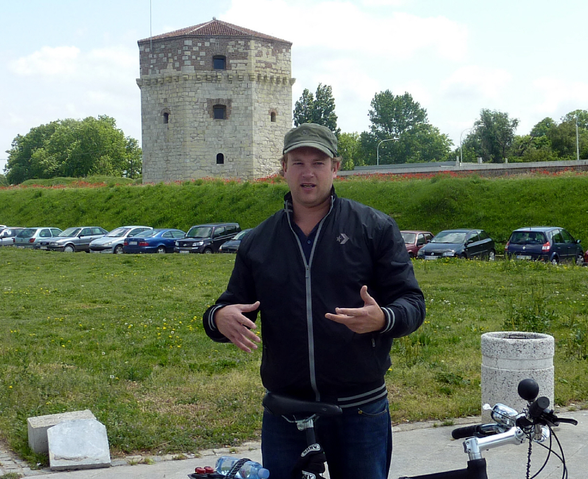 Der Holländer (Foto links) vermietet unter der Überschrift „iBikeBelgrade“ moderne Fahräder an die Touristen. Die Route seiner Halbtages-Tour startet in der Altstadt. Sie führt weiter über die Bronkow Brücke in die Neustadt. Der meist gut asphaltierte Weg führt immer nahe am Ufer entlang. Nach entspannter Fahrt wird der Vorort Zemun mit seinen verwinkelten Gassen erreicht. Hier laden Kafanas und kleine Fischrestaurants dazu ein, bei einem romantischen Blick auf die Donau Fischsuppe zu löffeln und serbisches Bier zu trinken.