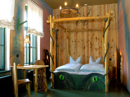 Als Bahnchef Mehdorn vor zwei Jahren den Bahnhof Lübbenau dicht machte und verkaufte, startete er ungewollt eine kleine Erfolgsgeschichte. In dem danach sanierten Gebäude entstanden Anfang 2006 die Spreewelten und im März dieses Jahres die gleichnamige Pension. Beim diesjährigen Wettbewerb um den deutschen Touristenpreis mit 74 Bewerbern schaffte es die Bahnhofs-Pension auf Anhieb unter die sieben nominierten Teilnehmer. Die kreative Idee heißt: “Schlafen im Kunstwerk“. Elf Künstler kreierten elf unterschiedliche Pensionszimmer. Da gibt es regionale Bezüge mit dem „Gemach des Wendenkönigs“, es wird mit dem „Abteil Miss Marple“ auf Eisenbahnromantik gesetzt oder in „Unter und über dem Wasser“ kann man einfach nur Abtauchen. Winter-Arrangements beispielsweise drei Nächte bleiben und nur zwei bezahlen oder zwei Übernachtungen mit Guten Morgen Büffet ans Bett und vielen Extras einschl. gemeinsames Rosenblütenbad in Holzwanne für 250 Euro. „Für manche Zimmer muss der Gast sogar auf eine Warteliste“ berichtet stolz Geschäftsführer Axel Kopsch. Wann gab es das schon in Lübbenau?