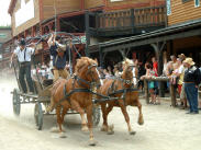 Die vor drei Jahren eröffnete Westernstadt für Groß und Klein hat bis Ende Oktober Programm. Die Ideen für immer wieder neue Themen scheinen unerschöpflich. Erstmals gibt es in diesem Jahr ein Husky-Treffen mit 150 Tieren, die ihre Wettfahrten auf Schlittenwagen mit Rädern absolvieren. Außerdem im Herbst gibt es ein Biker-Treffen, werden Halloween-Partys gefeiert. Und allerorten läuft das Showprogramm der Stuntmen, die in die Rollen der guten und der bösen Cowboys schlüpfen. Unterkünfte im Fort (44 Betten), in 12 Rancherhäusern und 5 Tipi (für Familien bis 5 Personen) sowie im Western-Hotel gleich neben dem Saloon. Arrangements drei Tage mit zwei Übernachtungen für Erwachsene und zwei Kinder für 333 Euro inklusive Eintritt Therme und Abendessen.