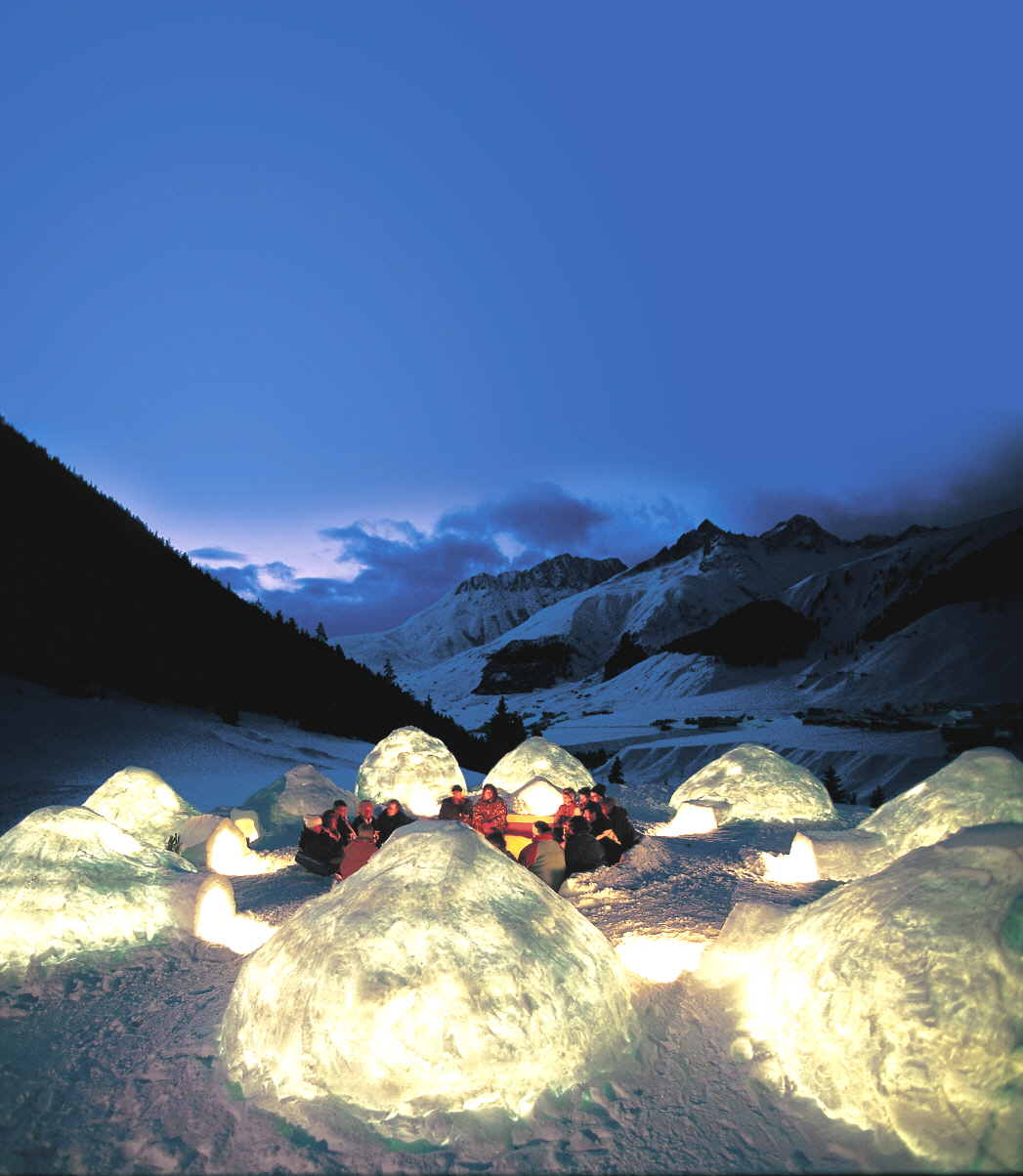 Ein Winterurlaub kann kaum cooler sein. Zur Beginn der Saison immer ab Dezember bauen die Schweizer in Davos - Kloster, Engelberg, Gstaad und Zermatt - ihre Iglu-Dörfer auf nebst Hotels. Sie sind dann bis Mitte April geöffnet. Für die Kunst am Bau sorgen Inuit-Künstler aus Nordeuropa und Kanada. Gebettet auf kuscheligen Lammfellen und eingehüllt in warme Schlafsäcke, braucht niemand zu frieren.