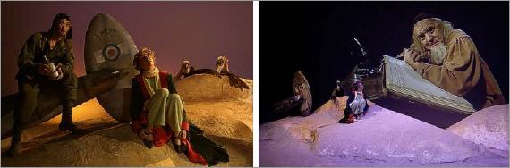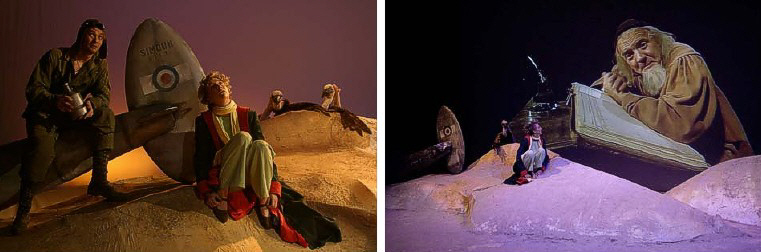 DER KLEINE PRINZ hilft dem in der Wüste abgestürzten Fliegerpiloten (Lorenz Christian Köhler), Durst und Einsamkeit der Wüste zu überleben. Zudem gibt es Begegnungen mit den „nichtmenschlichen“ Erdenbewohnern (Schlange, Rosen, Fuchs u.a.), die durch Puppenspieler zum Leben erweckt werden.