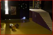 Die projizierte Miniaturfigur tritt mit dem Publikum in Kontakt, stellt Fragen, kommentiert Reaktionen, tauscht sich über die Ausstellungsinhalte aus und fachsimpelt über Gerüchte.