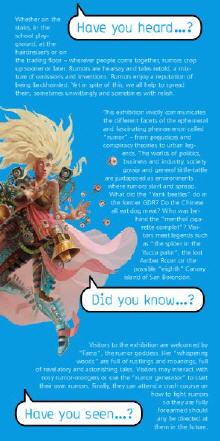 Die Besucherinnen und Besucher können sich mit den neugierigen Gerüchteagenten austauschen oder am Gerüchtegenerator selber Gerüchte produzieren. Schließlich absolvieren sie einen Schnellkurs zum Rumor Fighter – und sind künftig für den Umgang mit Gerüchten bestens gewappnet.