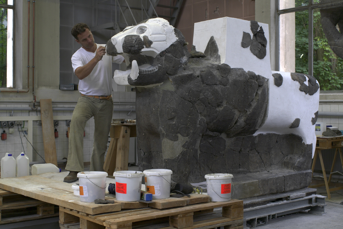 Bild: Ergänzung fehlender Partien am Kopf des Löwen vom Eingang des Westpalastes, August 2006 © Staatliche Museen zu Berlin,Foto: Olaf M. Teßmer