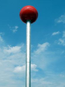 (siehe Foto), weil er durch seine interaktiven Qualitäten, seine Bezüge zur Geschichte sowie zur stadträumlichen Bedeutung des Gröbenufers überzeugte. Eine weithin sichtbare roten Leuchtkugel bewegt sich in Abhängigkeit des Schiffsverkehrs auf der Spree an dem Mast auf und ab.
