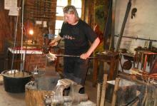Trotz hochsommerlicher Temperaturen kamen die Tour-Gäste nicht umhin, bei offenem Feuer Gabriele Sawitzki (siehe Foto links) beim Ausüben des so selten gewordenen Handwerks mal kurz über die Schulter zu schauen.