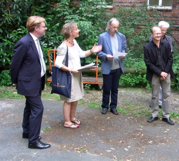 Gäste der Tour waren u. a. Dieter Hapel, Stadtrat für Schule, Bildung und Kultur, Gudrun Landau, Leiterin des Amtes für Bildung, Kultur und Seniorenbetreuung, Dr. Engelbrecht Boese, Leiter des Amtes Stadtbibliotheken, Petra Zwaka, stellv. Leiterin des Amtes für Bildung, Kultur und Seniorenbetreuung, Leiterin der Museen Tempelhof-Schöneberg.