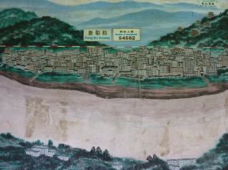 In seinem überdimensionalen Wandgemälde mit dem Titel “Tausend Meilen Drei Schluchten Bild“ zeigt eine gestrichelte Line, wie hoch das Wasser des entstandenen Stausees gestiegen ist. Außerdem führt er auf den Bildern darüber Buch, wie viele Bewohner der Städte am Ufer des Jangtze nach statistischen Angaben des Jahres 1992 umsiedeln mussten, aus Fengdu 54.582, aus Zhongxian 55.452, aus Wanschuan 159.333 …