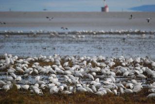 Im Jahr 1978 wurde hier das Schutzgebiet eingerichtet und mittlerweile hat sich die Zahl der Wildgänse vervielfacht und liegt jetzt sogar über eine Million. In dem Schlamm- und Schlickboden des Lorenzstroms hier am Cap fressen sich die Gänse fett und tanken Energie, um ihre Langflüge von rund 11.000 Kilometern durchzustehen. Im Oktober kommen sie aus arktischen Gefilden und machen bis zu zehn Tage ihren Futterstopp.