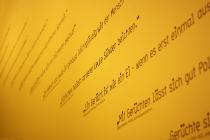 Holzer Kobler Architekturen (Zürich/CH) gestaltet wurde, thematisiert Vorurteile ebenso wie Verschwörungstheorien oder Urban Legends. Politik und Wirtschaft als Orte der Entstehung und Verbreitung von Gerüchten stehen neben Boulevard, Klatsch und Tratsch.