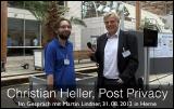 "Gefällt mir -Soziale Netze im Internet" Christian Heller im Gespräch mit Martin Lindner über das Buch "Post Privacy - Prima leben ohne Privatsphäre" - das am Rande des Kongresses an der Fortbildungsakademie des Innenministeriums von NRW, Mont-Cenis, in Herne. Selbstverständlich ungeschnitten, unzensiert und voller ungeschönter Wahrheiten ins Netz gestellt von Lutz Berger [mehr ...]