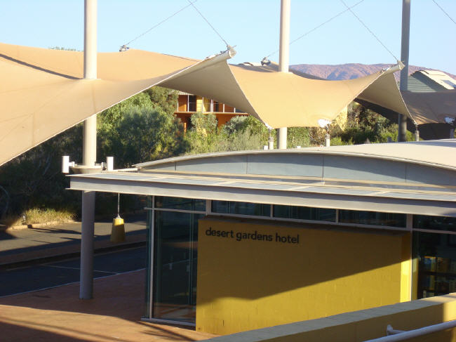 Die poppige Glaskonstruktion ist das Dach von dem modern eingerichteten Touristentreff Melbournes, das darunter in einem geräumigen Kellergeschoß untergebracht ist |