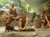 Folklore im Aboriginal Cultural Park – erst wird durch schnelles drehen von weichem Holz in hartem Holz wie bei den Ureinwohnern Feuer entzündet und dann soll das Publikum bei den Rhythmen der Aborigines mitklatschen und mitsingen |