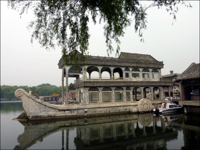 Das Schiff, am Ende des 19. Jahrhunderts gebaut, sollte die Stabilität der Qing-Dynastie symbolisieren. Der Bau sollte nachfolgenden Kaisern die Botschaft übermitteln, dass das steinerne Boot, darstellend die Macht des Kaisers, ständig vom Wasser, darstellend die gesamte Bevölkerung, getragen werden muss. Missbraucht der Kaiser seine Macht, wird sein Boot nicht mehr vom Wasser getragen und geht unter. Doch die Botschaft wurde bereits in der herrschenden Qing-Dynastie nicht beherzigt. Der letzte Kaiser musste im Jahr 1911 abdanken.