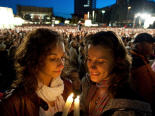 Gegenüber, an der Oper, wurde der Schriftzug "Leipzig 89" aus Kerzen errichtet. Während bei den meisten Teilnehmern das Lichtfest alte Gefühle wieder erweckte, erhielt die jüngere Generation ein Gespür dafür, was vor 20 Jahren geschah.Offiziell eröffnet wurde das "Lichtfest 2009" von Bundesminister a.D. Hans-Dietrich Genscher, Maestro Kurt Masur, Leipzigs Oberbürgermeister Burkhard Jung und den Bürgerrechtlern Katrin Hattauer und Jochen Lässig. "Mir fällt es sehr schwer, jetzt zu sprechen - viel lieber würde ich Musik machen.