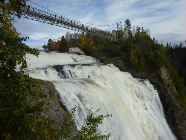 Eine an den Wasserfällen errichtete Holztreppe und eine Hängebrücke erlauben beste Sichten auf die stürzenden Wassermassen, die sich in den nahen St.-Lorenz-Strom ergießen. Die Wasserfälle erinnern daran, dass einer der größten Exportartikel von Quèbec Energie aus Wasserkraft ist, die aus riesigen Stauseen gespeist hauptsächlich in die USA geliefert wird.
