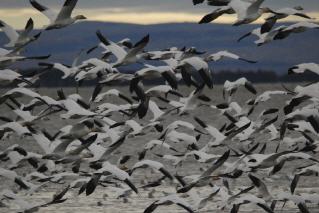 Insgesamt elf verschiedene Wegstrecken von insgesamt 20 Kilometer Länge sind im Schutzgebiet aufgebaut, meist aus Holz gezimmerte Wege, um trockenen Fußes zu den überdachten Beobachtungsstellen zu gelangen. Überall stehen fest verschraubte Ferngläser, die die Gänse ganz nah heranholen. Die Tiere scheinen pausenlos mit futtern oder schnattern beschäftigt und lassen sich von den neugierigen Zaungästen, die durch Holzwände etwas abgeschirmt sind, nicht stören.