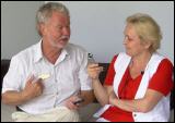 Links im Gespräch mit Elisabeth Heller im Juni 2008 - Monat der Eröffnung des Resorts