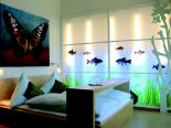 Bildtexte: Schlafen im Kunstwerk „Unter und über dem Wasser“, Pension Spreewaldzimmer, Pension Kahn mit Spiegeln, Pension Zimmer Wotan