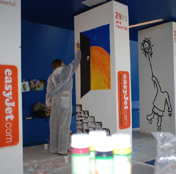 Mauerfall ist ein kosmopolitischer Event "So haben wir uns das vorgestellt! Wir wollten unsere Kunden aus ganz Europa an dem historischen Ereignis in Berlin teilhaben und sich kreativ damit auseinandersetzen lassen. Heute hat sich gezeigt: Unsere Fluggäste sind nicht nur reisefreudig, sondern auch inspiriert", so Verena Keimer, Marketingleiterin easyJet Deutschland, die angesteckt von der kreativen Energie im Terminal sogar selbst zum Pinsel griff.