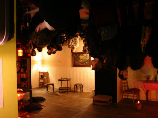 Wer einmal das Madame CLAUDE betreten hat, wird die Räumlichkeiten nicht so schnell vergessen. Die Macher haben sich ihren Kindheitstraum erfüllt, nämlich, einmal an der Zimmerdecke entlangzulaufen, und jegliche Einrichtung der Schwerkraft entgegengesetzt angebracht – vom Bücherregal bis zur Blumenvase. Das schafft eine magische Atmosphäre, die noch dadurch begünstigt wird, dass das Madame CLAUDE auf drei Ebenen angelegt ist.