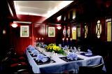 Das Spezialitätenrestaurant STEAKTRAIN wurde im Stil eines Luxusspeisewagens aus dem Mittleren Westen gestaltet. Auch hier entdeckt man die Liebe zum Detail, die Nähe zum Leipziger Hauptbahnhof war bei diesem Design kein Zufall. Dunkles Mahagoni-Holz und gedämpftes Licht schaffen eine gemütliche Atmosphäre für die 105 Plätze im Restaurant. Eine Besonderheit ist der Lava- Grill, auf dem diverse Fleisch- und Fischspezialitäten frisch gegrillt werden.