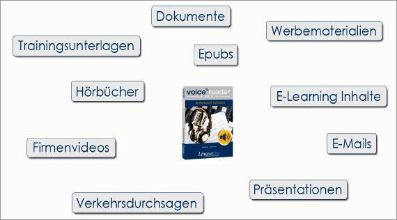 "Die Einsatzmöglichkeiten einer effizienten und individualisierten Vertonung sind immens", analysiert Dr. Reinhard Busch, Geschäftsführer bei Linguatec GmbH, den Bedarf an rasch und flexibel zu erstellenden Audiodateien. "Das geht von Durchsagen in öffentlichen Verkehrsmitteln über die Vertonung von E-Learning Inhalten, Präsentationen und Werbevideos bis hin zum Vorlesen von Hörbüchern, Manuskripten oder Webseiten.