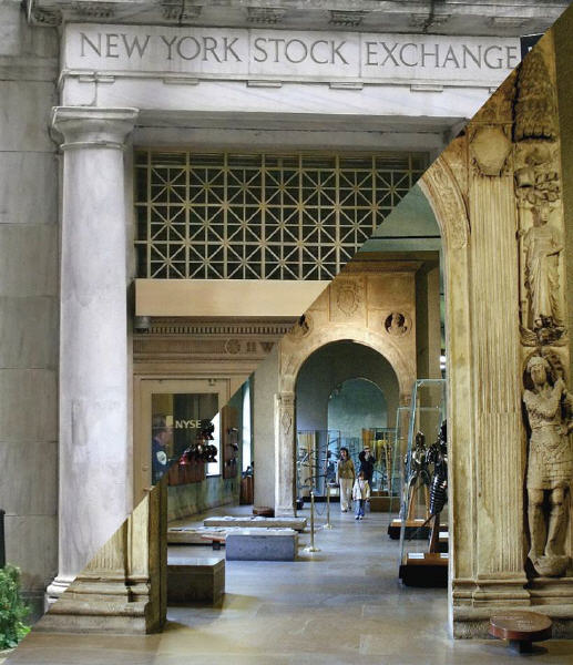 Klicken Sie zur Vergrößerung der Collagen auf selbige. 1. Die größte Wertpapierbörse der Welt / Portal des Bankhauses der Familie Medici, Mailand, 15. Jh. (Ad Meskens, CC BY-SA 3.0/ Giovanni Dall’Orto, CC BY-SA 3.0, Collage) 2. Muhammad-Ali-Moschee in Kairo / Interfaith Chapel im Flughafen Atlanta (Cornell University Library / Paulo Ordoveza, CC BY 2.0, Collage), 3. Turm zu Babel und die Hängenden Gärten der Semiramis / Skyline von Shanghai (rechts: Joan Campderrós-i-Canas, CC BY 2.0, Collage)