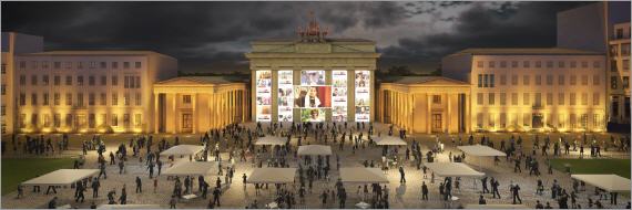 Simulation der multimedialen Installation am Brandenburger Tor am 10. November © Dreinull / KPB