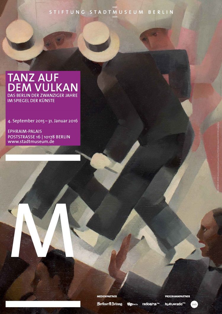 Die Ausstellung „Tanz auf dem Vulkan„ fängt die Stimmungslage der Bevölkerung zwischen Aufstieg und Niedergang, zwischen Luxus und Elend, ein. Erstmals werden Zeugnisse der bildenden Kunst, der Architektur, des Designs, der Mode, des Theaters, des Varietés und der Revue in ihrer materiellen und zugleich historischen Komplexität nachgezeichnet. Hinzu kommen z. B. Film- und Tondokumente wie Ausschnitte aus „Berlin Alexanderplatz„ mit Heinrich George von 1931 oder Rundfunk-Reportagen, so von Alfred Döblin über die Ausstellung der Berliner Secession im selben Jahr.