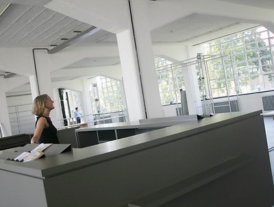 Bildunterschrift zum Bild oben: Gerade wird das neue Besucherzentrum im Saal der einstigen Tischlerwerkstatt des Bauhauses eingerichtet. Stilgetreu wurde ein neuer Verkaufstresen entworfen und angefertigt.