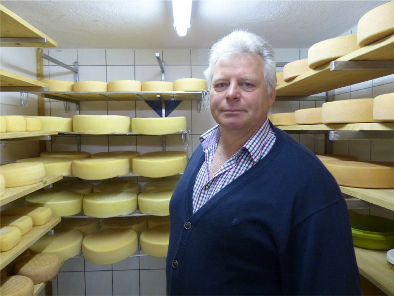 Konrad hat sich autodidaktisch das „Käsn“ beigebracht und dazu zwei Jahre gelernt und trainiert. Jetzt kann er aus 400 Litern Milch ihrer Kühe 40 Kilogramm Käse herstellen. In seiner privaten Käserei bietet er acht Sorten an. Die Urlauber in seinen zwei Ferienwohnungen und einige umliegende Gasthöfe sind die Abnehmer. www.lochnerhof.de