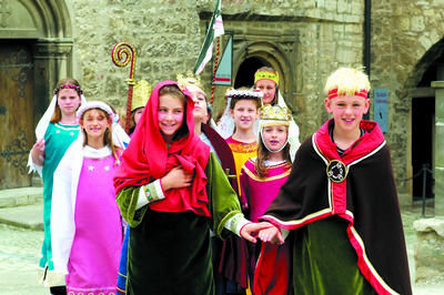 Junge Museumsmitarbeiterinnen nehmen die Kinder auf ihrer Reise in die Vergangenheit an die Hand. Die jungen Besucher schauen sich in der Kemenate um: das Mobiliar, die Gefäße, historische Kinderspiele – so ähnlich sah es hier also aus zur Blütezeit des Mittelalters. Dann wird in historische Kostüme geschlüpft, damit man sich auch authentisch in die Zeit der Ritter und Fürsten einfühlen kann. Musik, wie sie von Minnesängern bei Hofe gespielt wurde, sorgt für die richtige Stimmung.