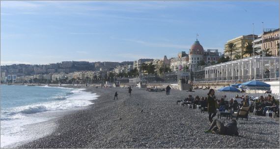 Das Empfangskomitee von Nizza ist für seine Besucher im Februar wie jedes Jahr perfekt aufgestellt. Die Berge und Hügel rund um die Stadt am Mittelmeer schützen vor den Winden wie dem Mistral und sorgen für milde Wintertage um die 10 Grad Celsius. Die Brasserien und Cafe`s stellen Tische und Stühle vor die Tür und sogar auf den steinigen Strand.