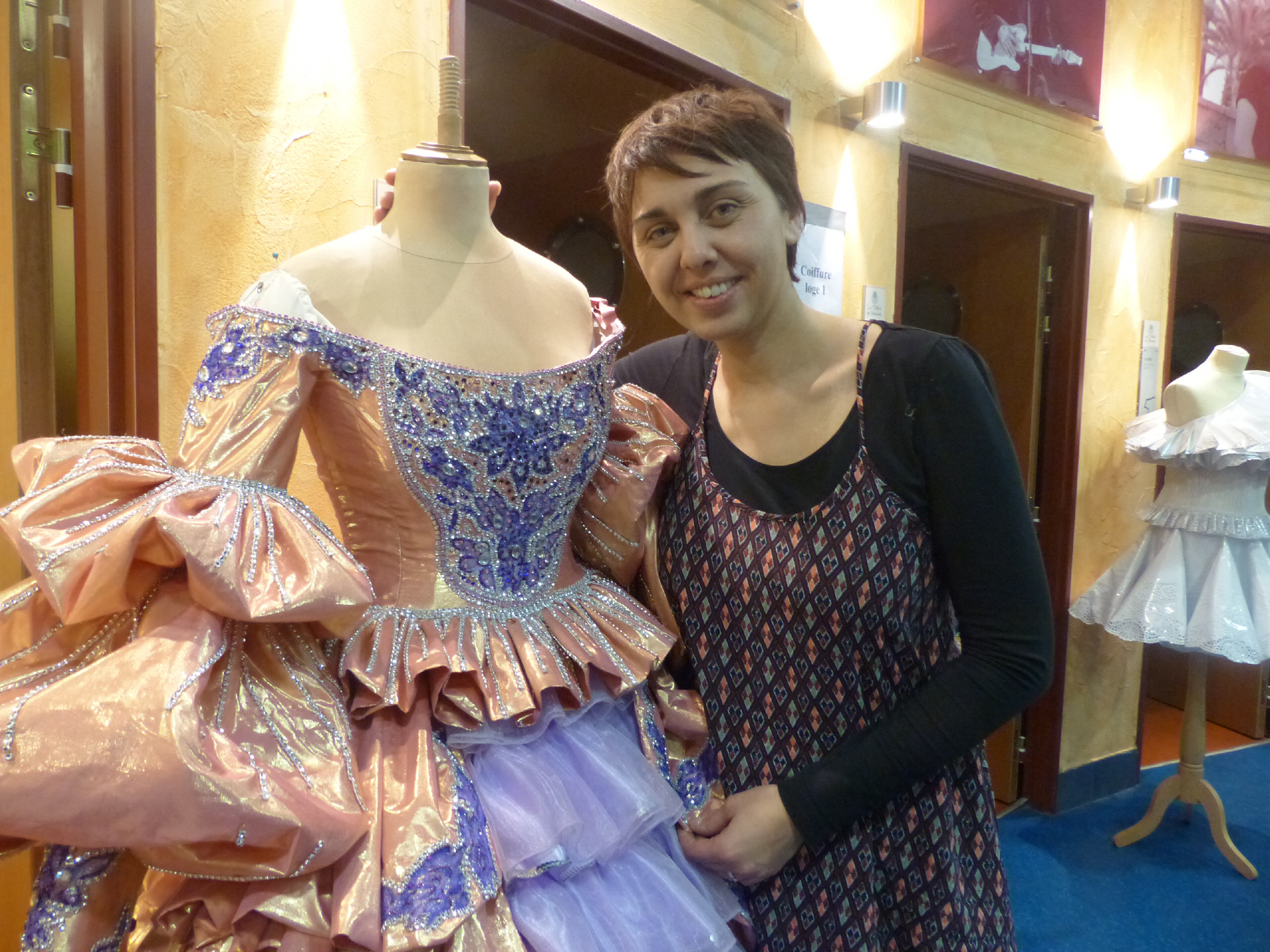 Die Kostüme müssen sowohl den Mädchen passen und sollen auch eine Einheit mit den jeweiligen Blumenwagen bilden. Etwa eine Woche Zeit sei pro Kostüm zu veranschlagen, so erzählt Chef-Schneiderin Caroline, und allein für die Herstellung des Kostüms der Königin sind 200 Arbeitsstunden nötig gewesen. Caroline Roux, die auch in den Ateliers des Opernhauses der Stadt beschäftigt ist, sorgt sich auch um die Entwürfe der Kostüme und den Einkauf der Stoffe. Da steckt in der Karneval-Ausstattung jede Menge ernste Arbeit. Aber jetzt überwiegt bei ihr die Vorfreude auf den Umzug.